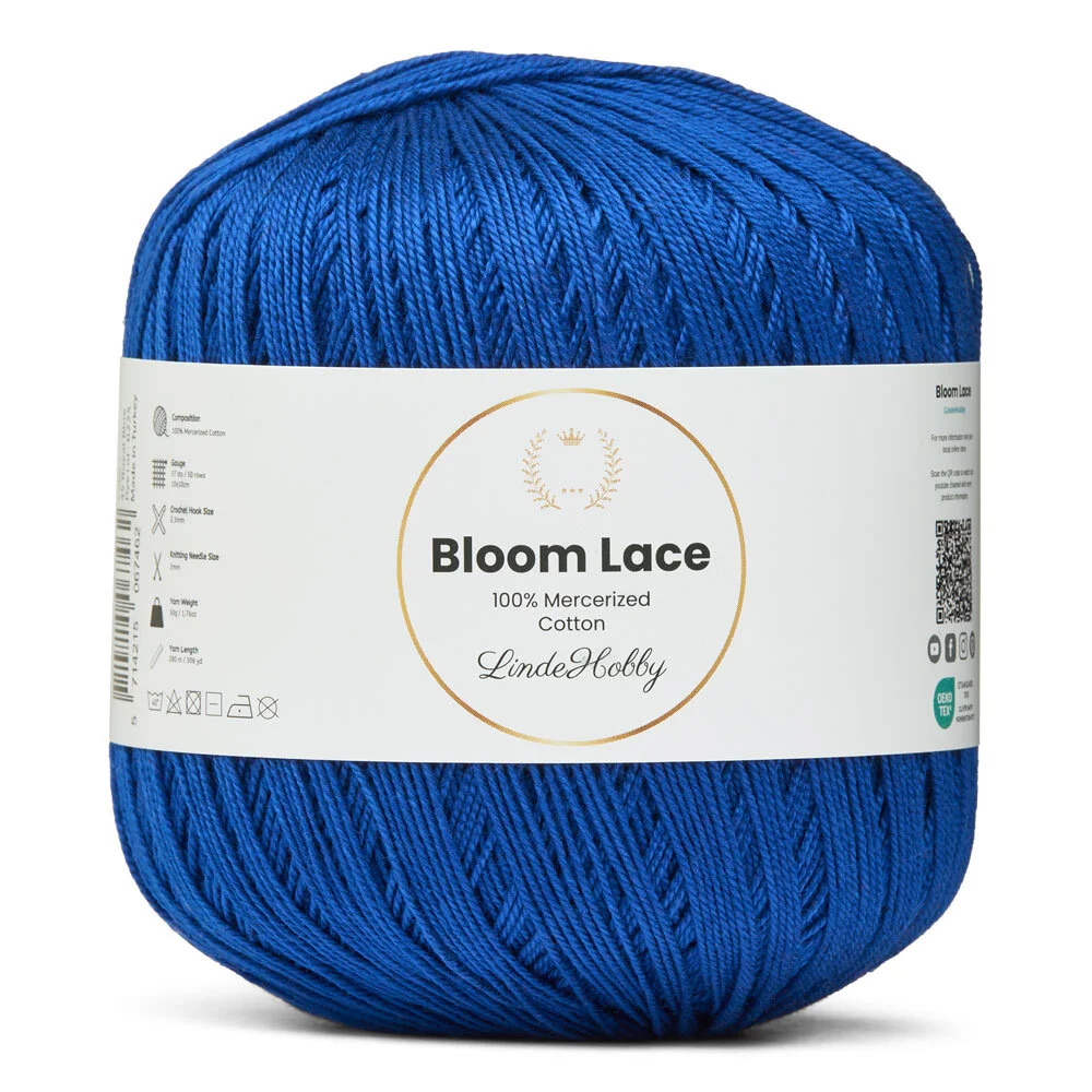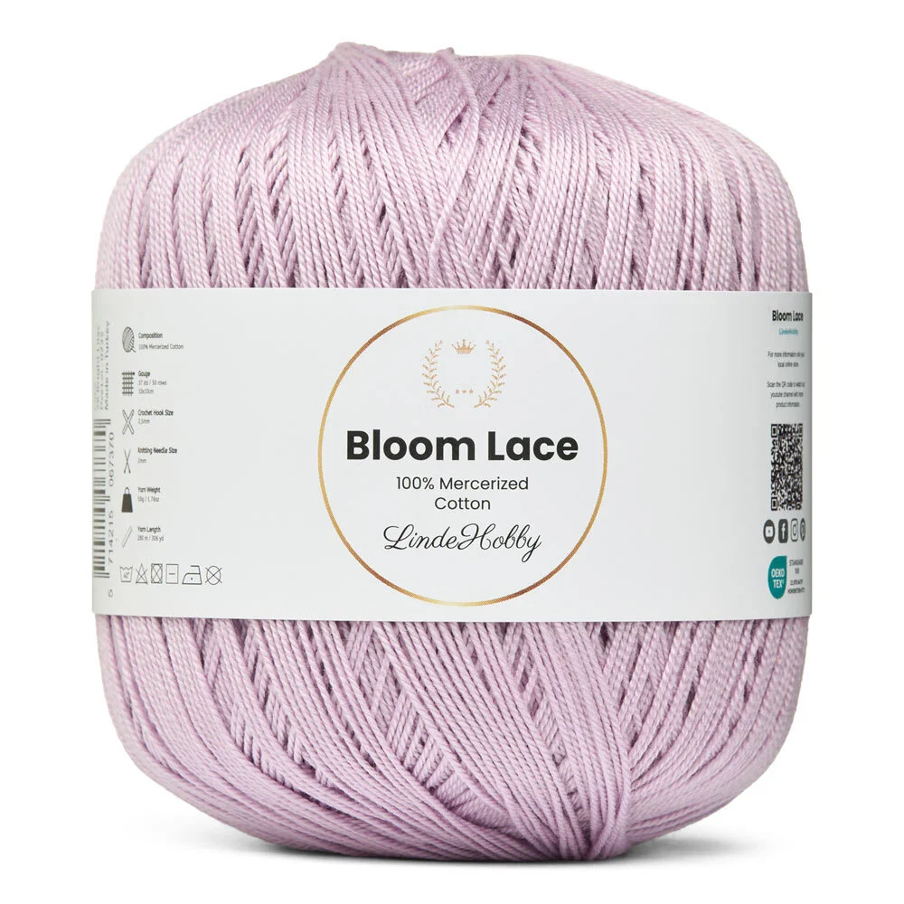 LindeHobby Bloom Lace är ett lyxigt lace-garn tillverkat av 100% merceriserad bomull. Garnet har en vacker, glansig yta och en tät, slät struktur som ger ett exklusivt uttryck i det färdiga arbetet. Det fina och delikata garnet är perfekt för projekt där precision och en elegant finish står i fokus.