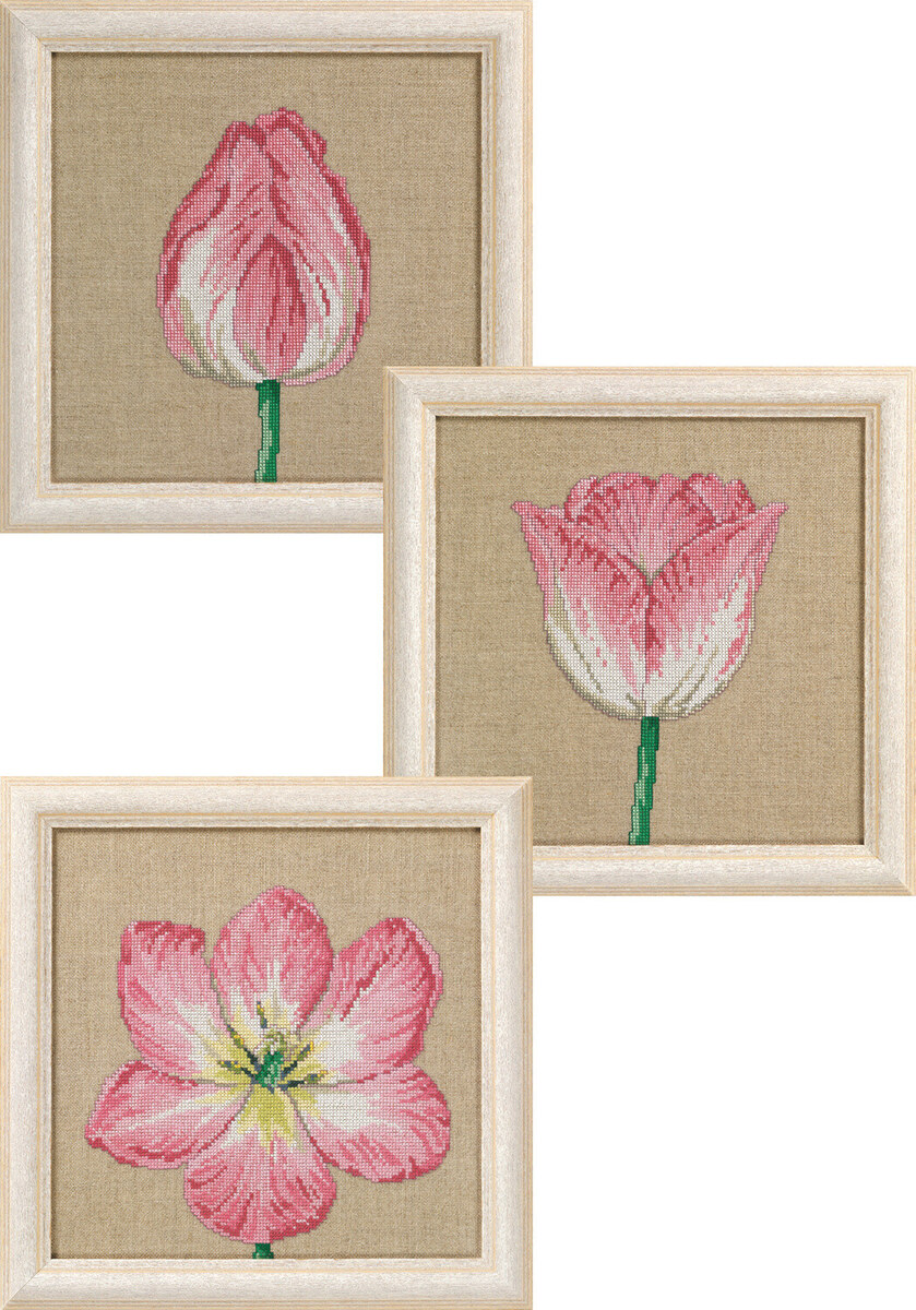 Ge liv och färg till ditt hem med vårt broderikit "Tulpaner i faser". Detta eleganta kit fångar skönheten och transformationen av tulpaner när de blommar i sin naturliga prakt. Med milda pastellfärger och delikata detaljer är denna design perfekt för både nybörjare och erfarna broderientusiaster. Varje motiv mäter 25x25 cm, vilket gör dem idealiska för att dekorera vilket rum som helst.