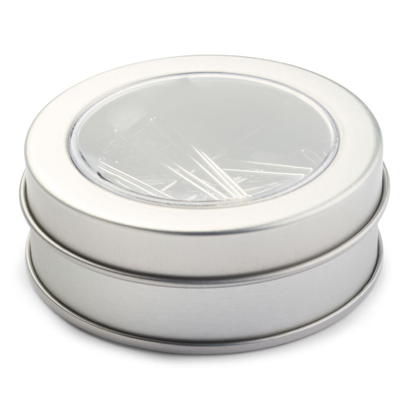 Innehåll: 50, 100 eller 200 st T-nålar i plåtask