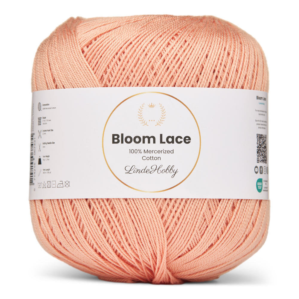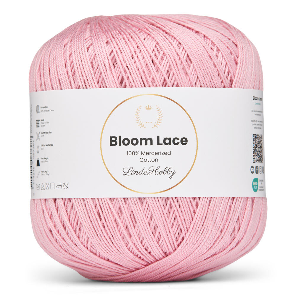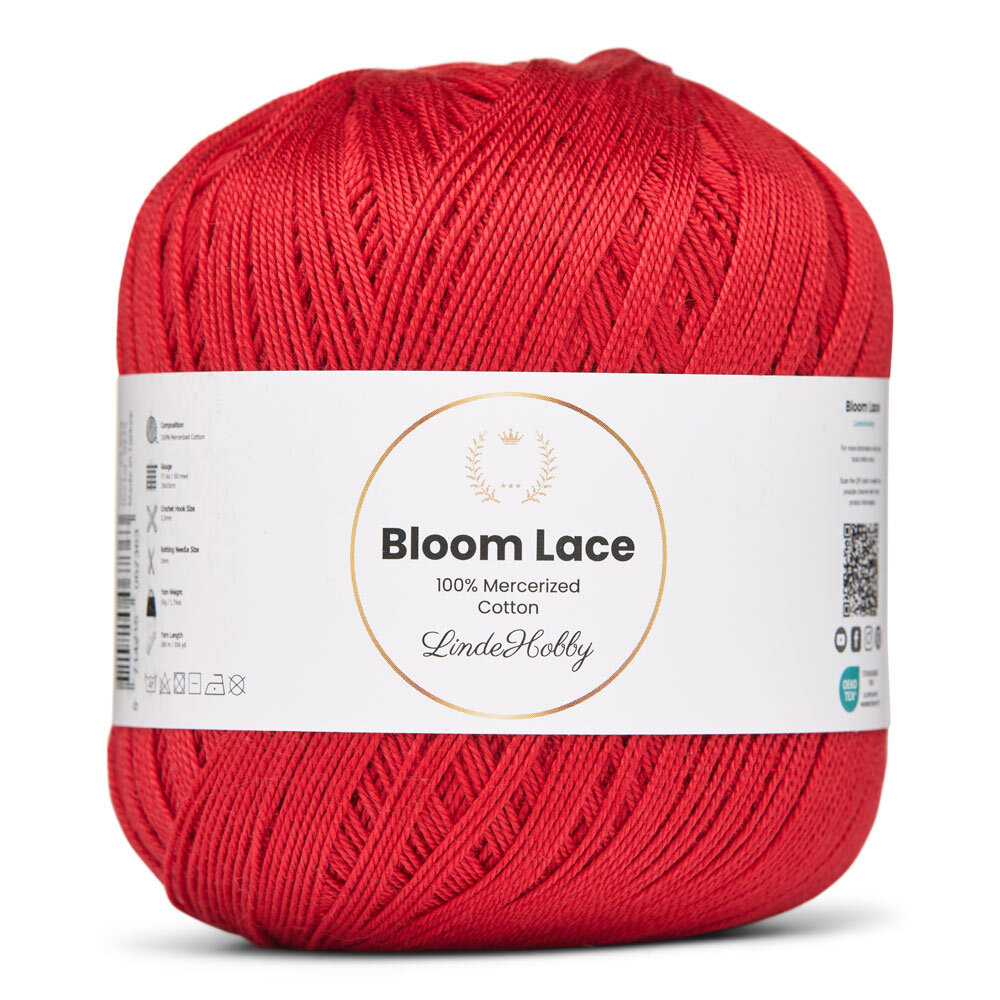LindeHobby Bloom Lace är ett lyxigt lace-garn tillverkat av 100% merceriserad bomull. Garnet har en vacker, glansig yta och en tät, slät struktur som ger ett exklusivt uttryck i det färdiga arbetet. Det fina och delikata garnet är perfekt för projekt där precision och en elegant finish står i fokus.