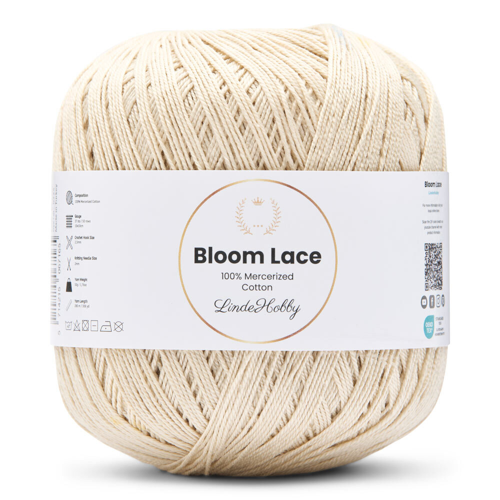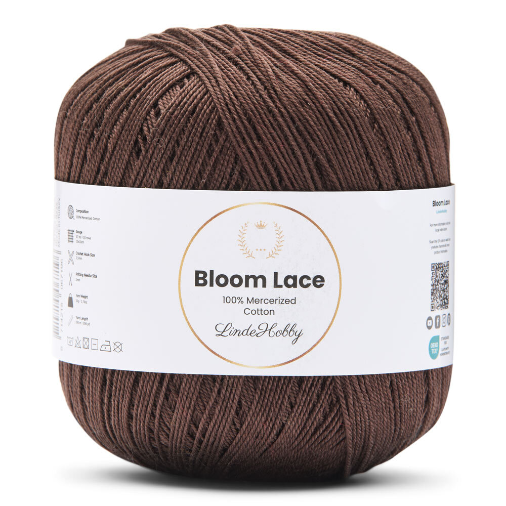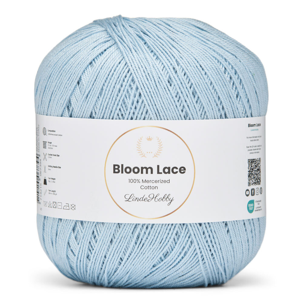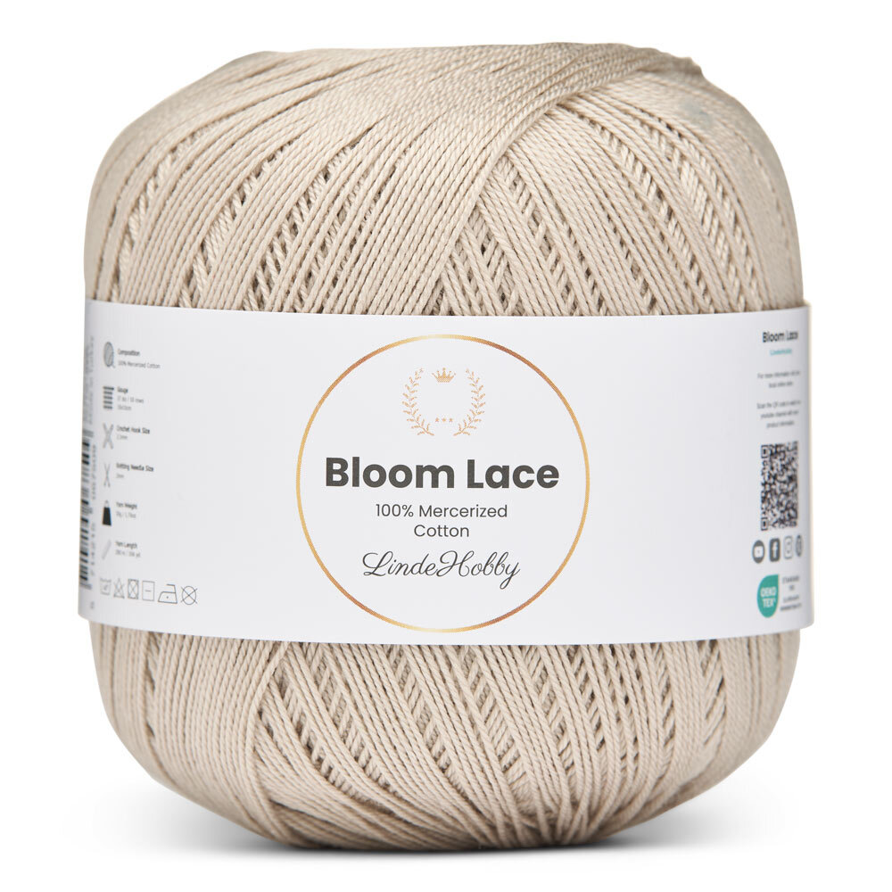 LindeHobby Bloom Lace är ett lyxigt lace-garn tillverkat av 100% merceriserad bomull. Garnet har en vacker, glansig yta och en tät, slät struktur som ger ett exklusivt uttryck i det färdiga arbetet. Det fina och delikata garnet är perfekt för projekt där precision och en elegant finish står i fokus.