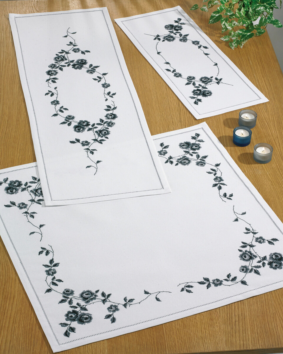 Broderikit Klätterrosor i grått 25 x 61 cm