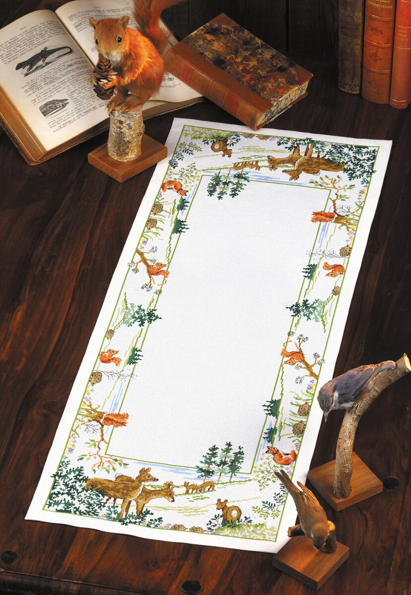 Upplev skogens stilla magi med vårt broderisats Skogens djur. Detta vackra och inbjudande motiv fångar de fina detaljerna av skogens djurliv, som kommer till liv i mjuka jordtoner och skapar en atmosfär av ro och naturlig skönhet.