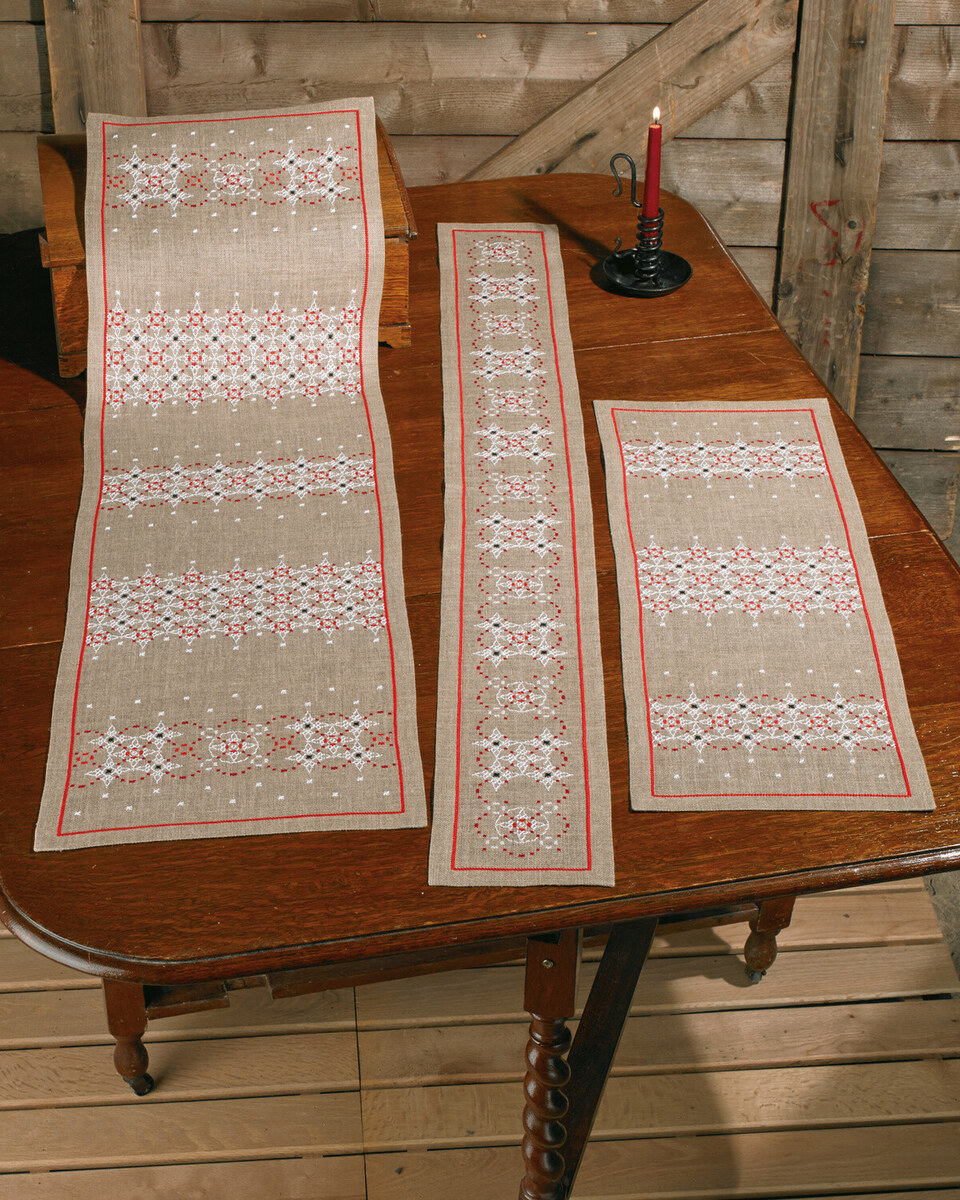 Välkommen till ett anmärkningsvärt broderiset: Bårder på linne, som med sina eleganta detaljer inbjuder dig till att fördjupa dig i en värld av klassiskt hantverk. Detta set utstrålar en harmonisk balans med sitt delikata mönster av blommor och geometriska former, som är perfekt avstämda för att pryda vilket rum som helst. Med dimensionerna 36x123cm erbjuder detta broderiset ett fängslande projekt, som kommer att utmana och glädja varje broderientusiast.
