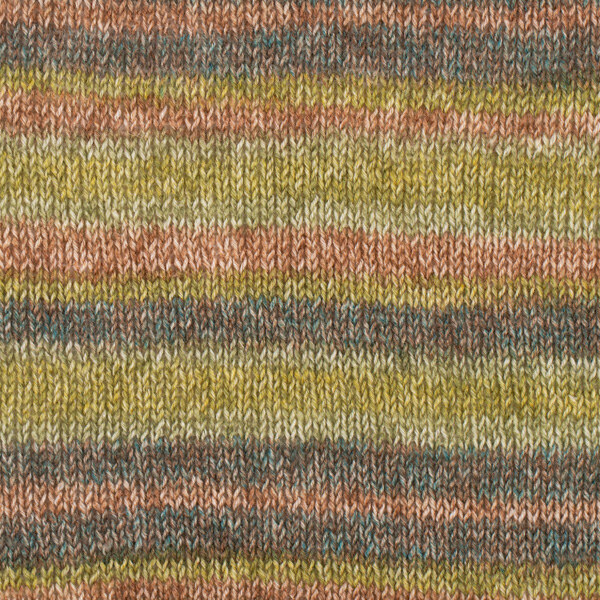 Att sticka med färre maskor (som vid strumpstickning) ger en tydlig, melerad effekt. På större ytor blir färgsekvenserna längre och mer flytande. Använd garnet för att skapa färgstarka projekt utan att byta nystan under tiden. Eftersom garnet färgas med en speciell “fancy dyeing”-teknik kan små variationer i färg och mönster förekomma mellan färgpartier. Detta bidrar till garnets unika uttryck.