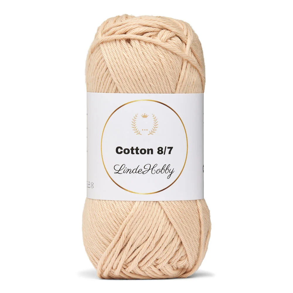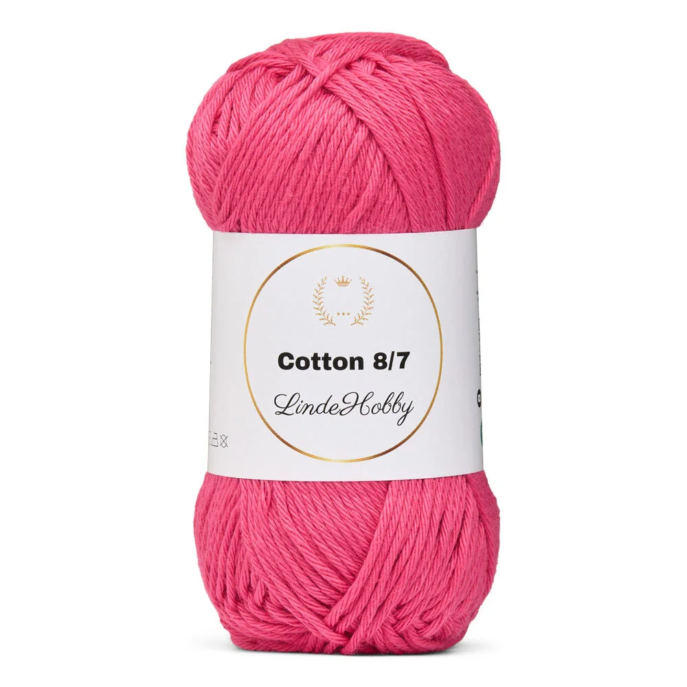 LindeHobby Cotton 8/7 är ett klassiskt garn i 100% bomull med en löplängd på ca 90 meter per 50 g. Garnet har en fast och jämn trådstruktur som gör det enkelt och behagligt att arbeta med – oavsett om du stickar eller virkar. Det är ett populärt val bland både nybörjare och erfarna, och finns i ett brett urval av vackra färger.