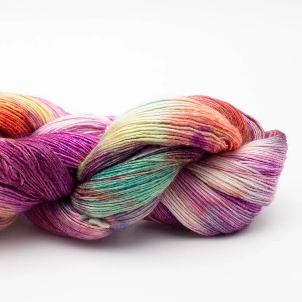 Manos del Uruguay Fino är ett lyxigt handfärgat garn som kombinerar 70% merinoull och 30% silke. Denna unika blandning ger garnet en silkeslen textur och en vacker, lätt glans som gör det perfekt för exklusiva projekt. Varje härva är handfärgad och unik, vilket ger dina skapelser en personlig touch.