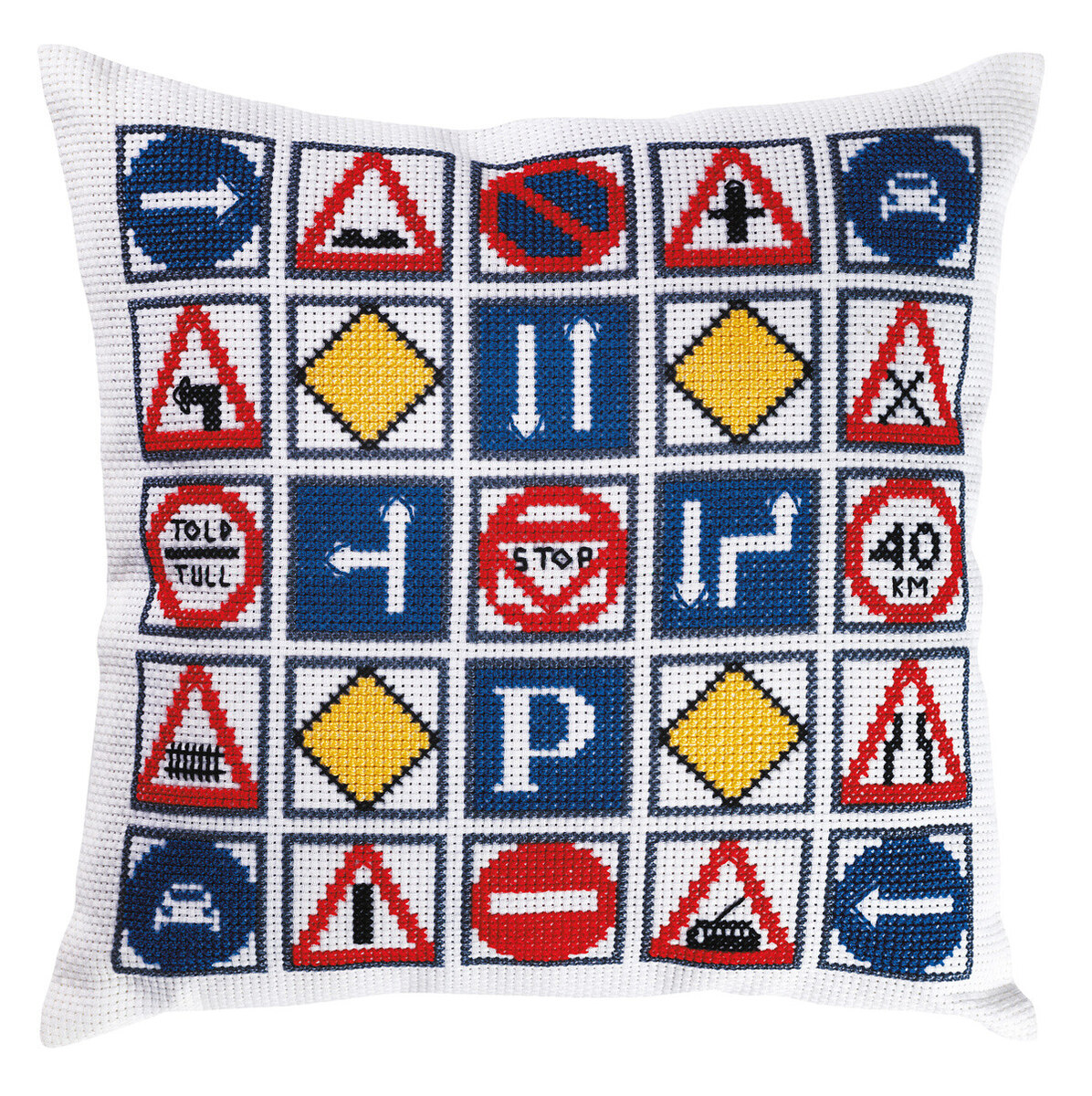 Upplev glädjen i att brodera med detta livfulla och färgglada broderikit, 'Trafikskyltar', som mäter 36x36cm. Detta kit erbjuder ett charmigt motiv med olika vägskyltar, som garanterat kommer att tillföra ett iögonfallande element till vilket rum som helst.