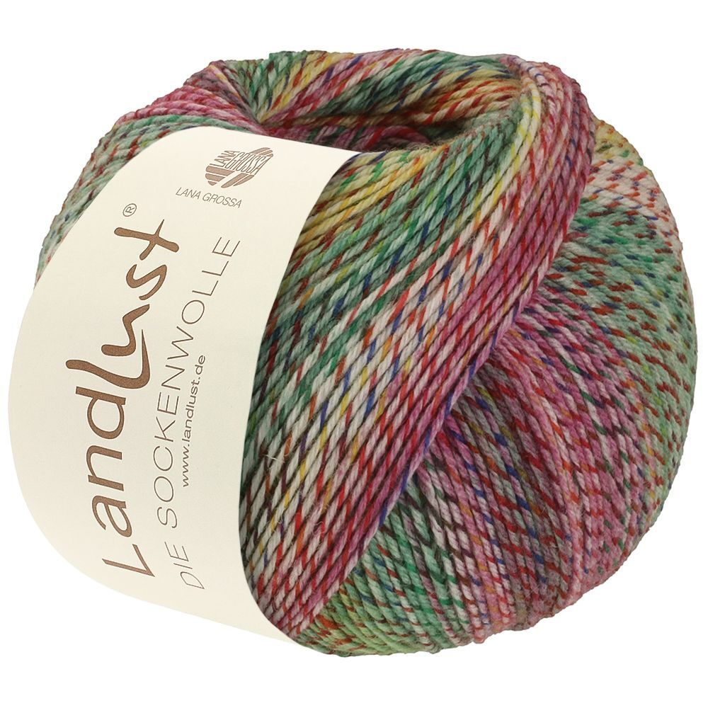 Lana Grossa Landlust Die Sockenwolle är ett härligt sockgarn gjort av 80% ren, ny merinoull och 20% polyamid för extra hållbarhet. Garnet är maskintvättbart, filtfritt och perfekt för att skapa mjuka men slitstarka strumpor i olika mönster och färger. Ett nystan á 100 gram räcker till ett par strumpor.