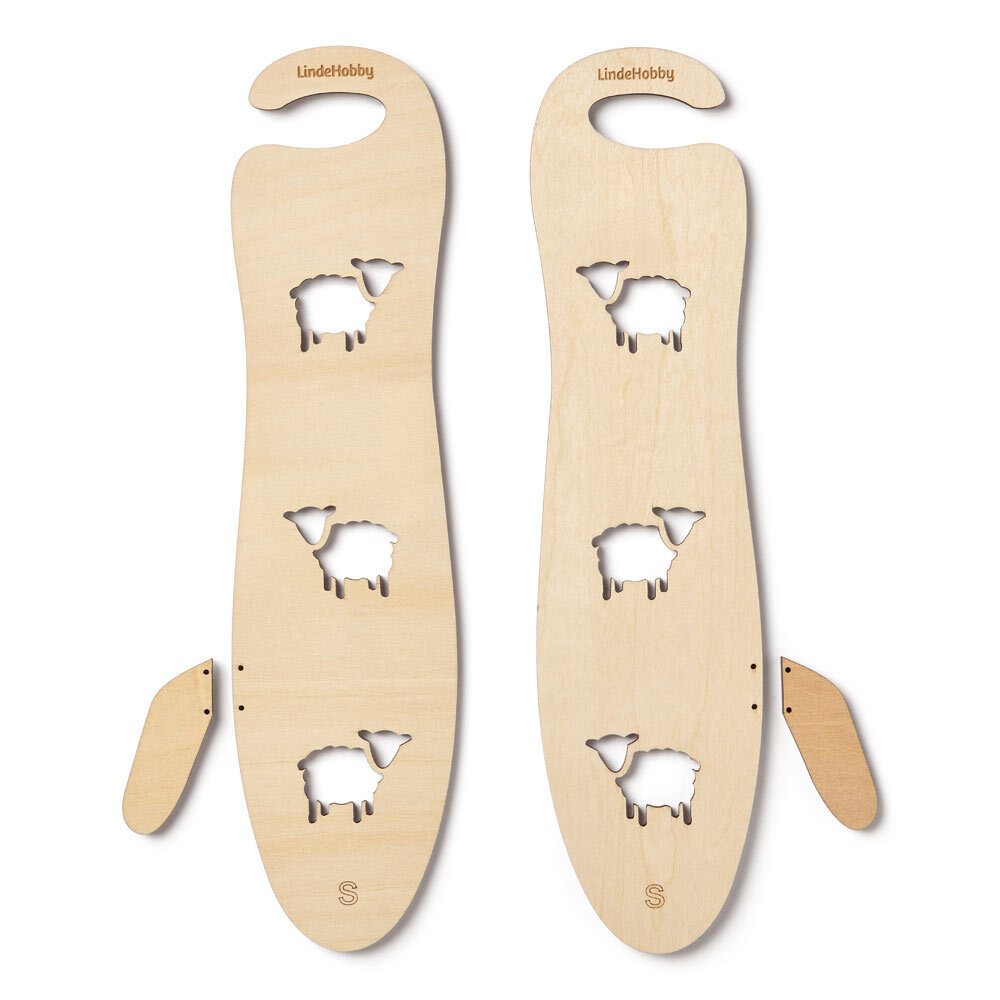 Praktiska handskeformare i plywood, idealiska för att forma och torka stickade handskar. Produkten levereras som ett set i storlekarna Small, Medium och Large.