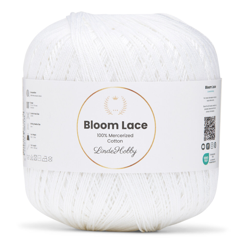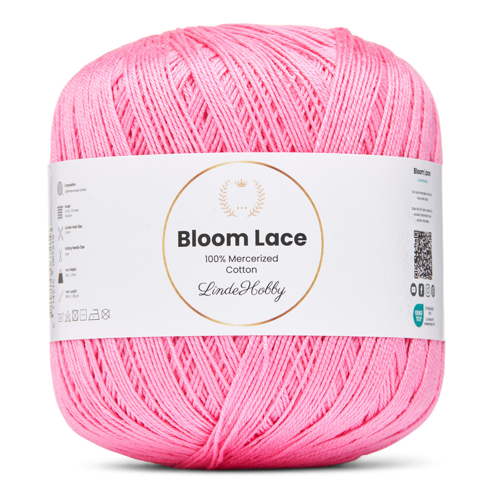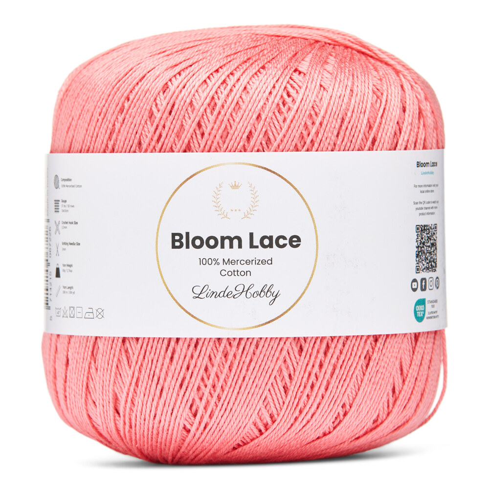 LindeHobby Bloom Lace är ett lyxigt lace-garn tillverkat av 100% merceriserad bomull. Garnet har en vacker, glansig yta och en tät, slät struktur som ger ett exklusivt uttryck i det färdiga arbetet. Det fina och delikata garnet är perfekt för projekt där precision och en elegant finish står i fokus.