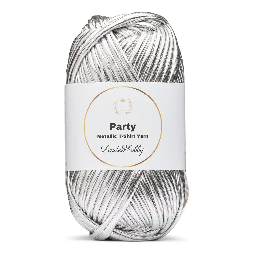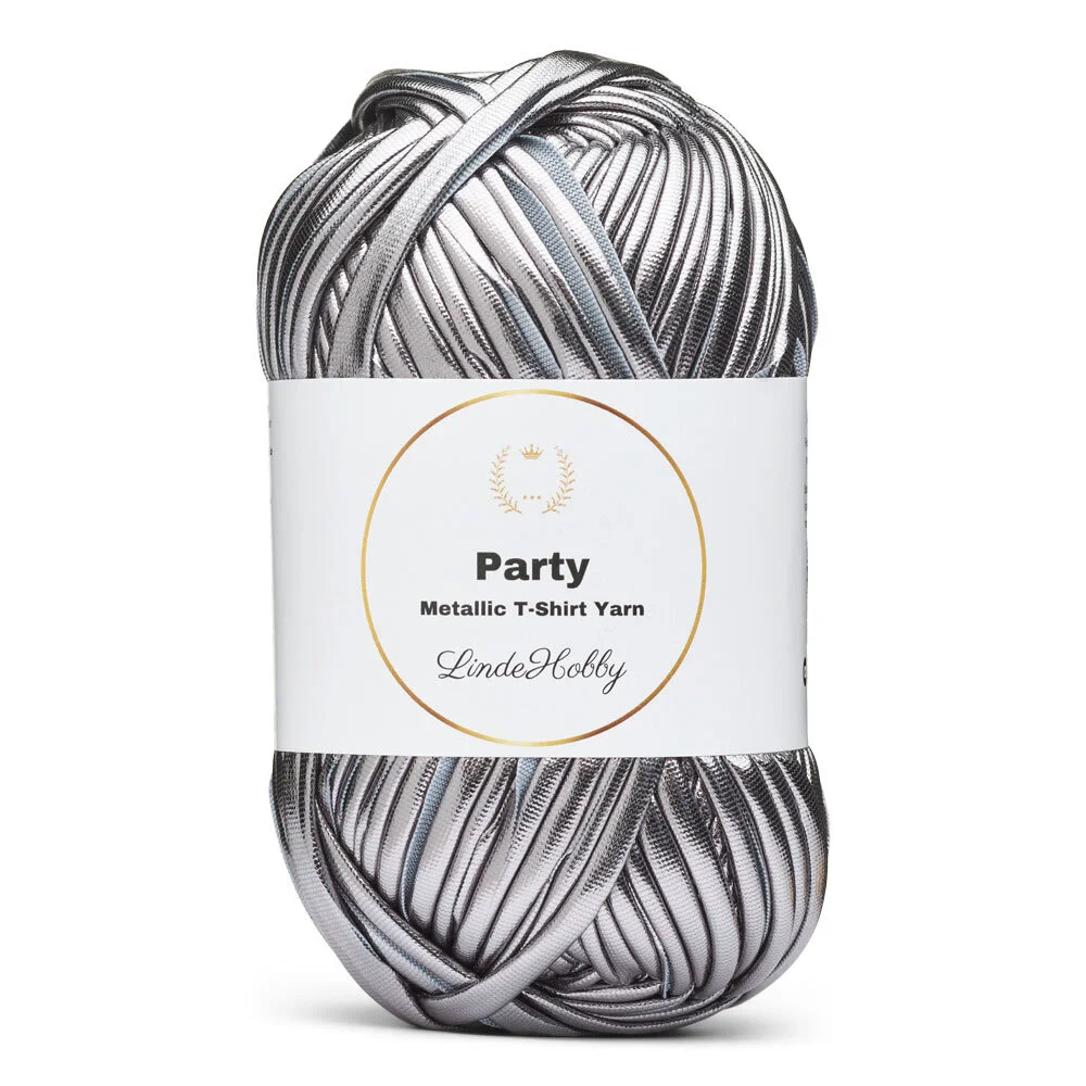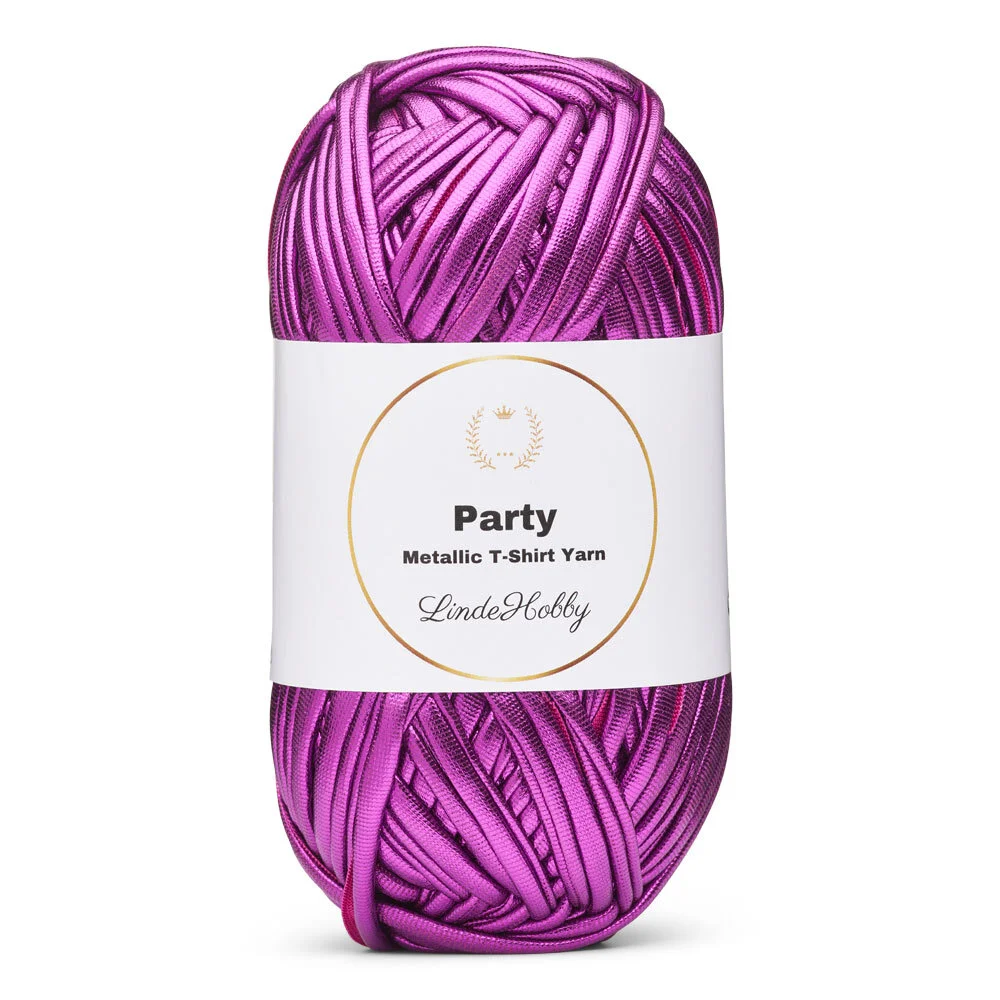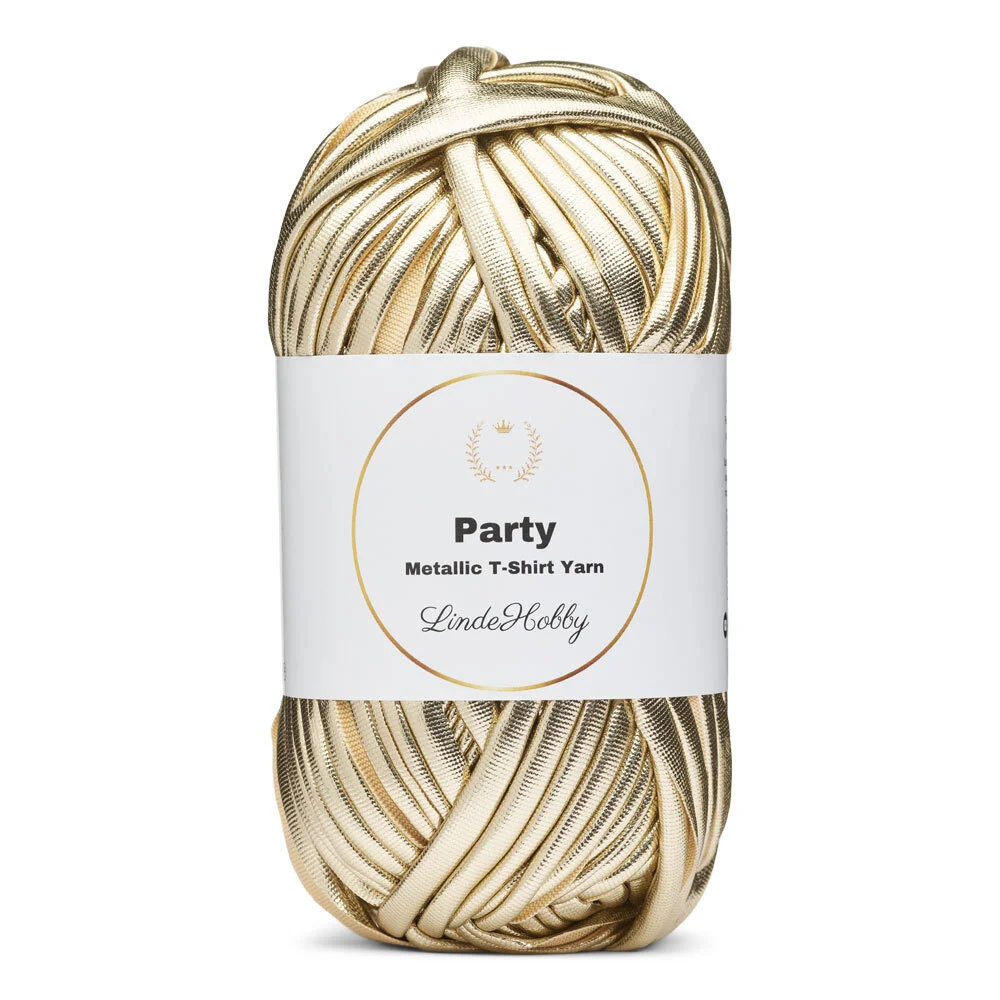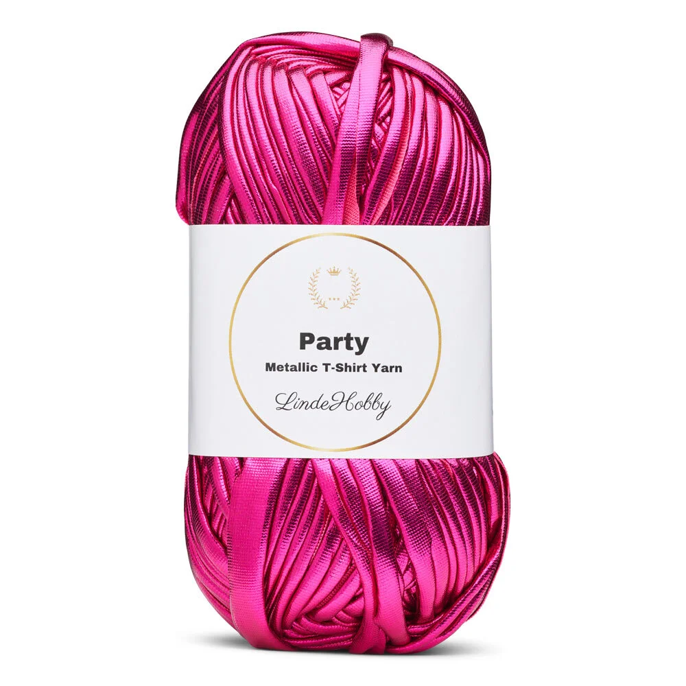 LindeHobby Party är ett iögonfallande och dekorativt T-shirtgarn med en fin glansig yta. Garnet har en metallisk effekt på ena sidan, vilket ger dina projekt ett exklusivt och festligt uttryck. Den blanka ytan fångar ljuset vackert och skapar reflektioner, vilket gör garnet perfekt för projekt där detaljerna ska framträda. Oavsett om du gör små accessoarer, väskor eller kreativa korgar, tillför LindeHobby Party glans och liv till dina designer.