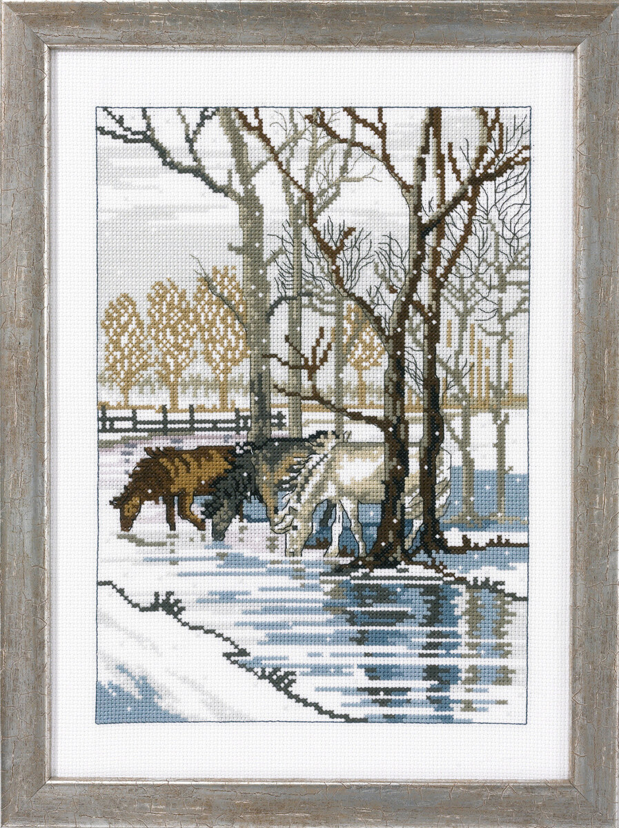 Broderikit 3 hästar vid ån 35 x 25 cm R5797