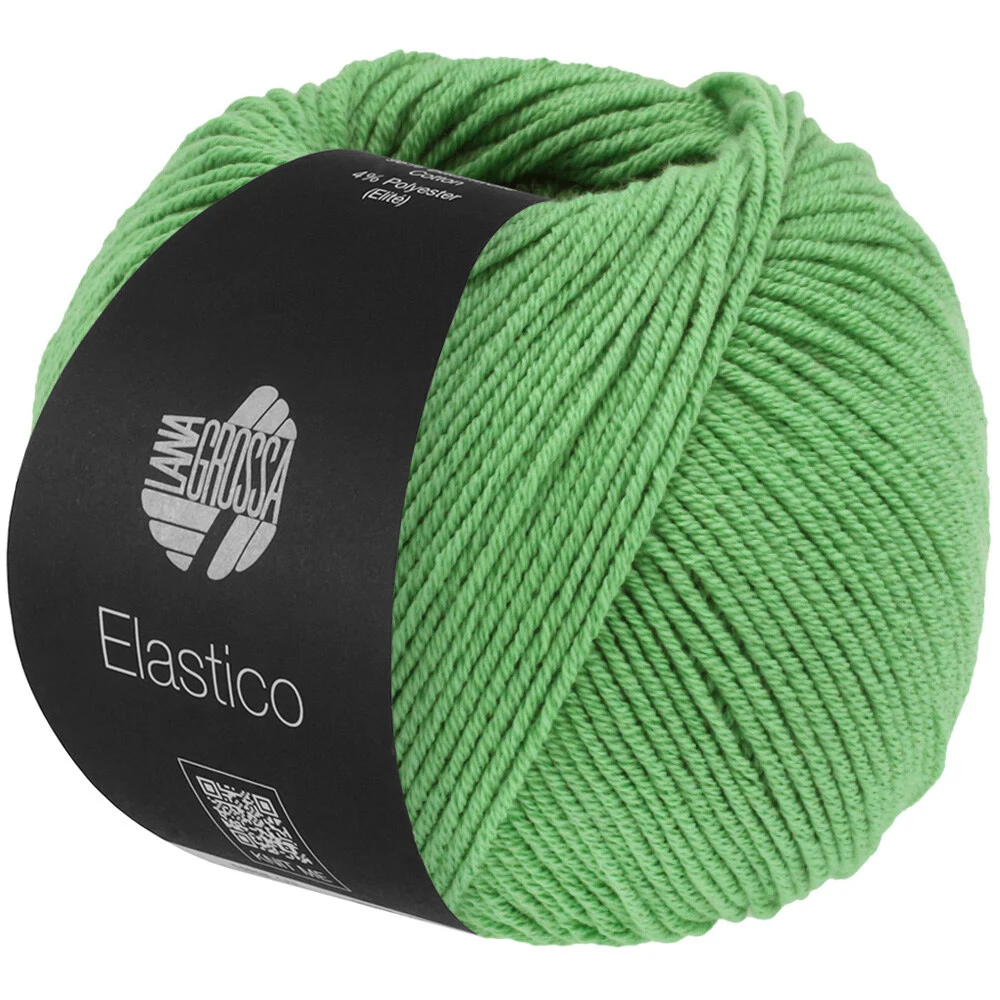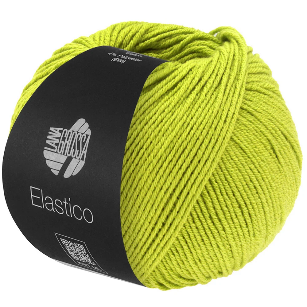 Lana Grossa Elastico är ett stretchigt och lätt garn av 96% bomull och 4% elastisk polyester. Den elastiska polyestern ger garnet en extra stretch, vilket gör det perfekt för projekt där passformen är viktig. Den höga bomullshalten gör garnet lätt och luftigt.