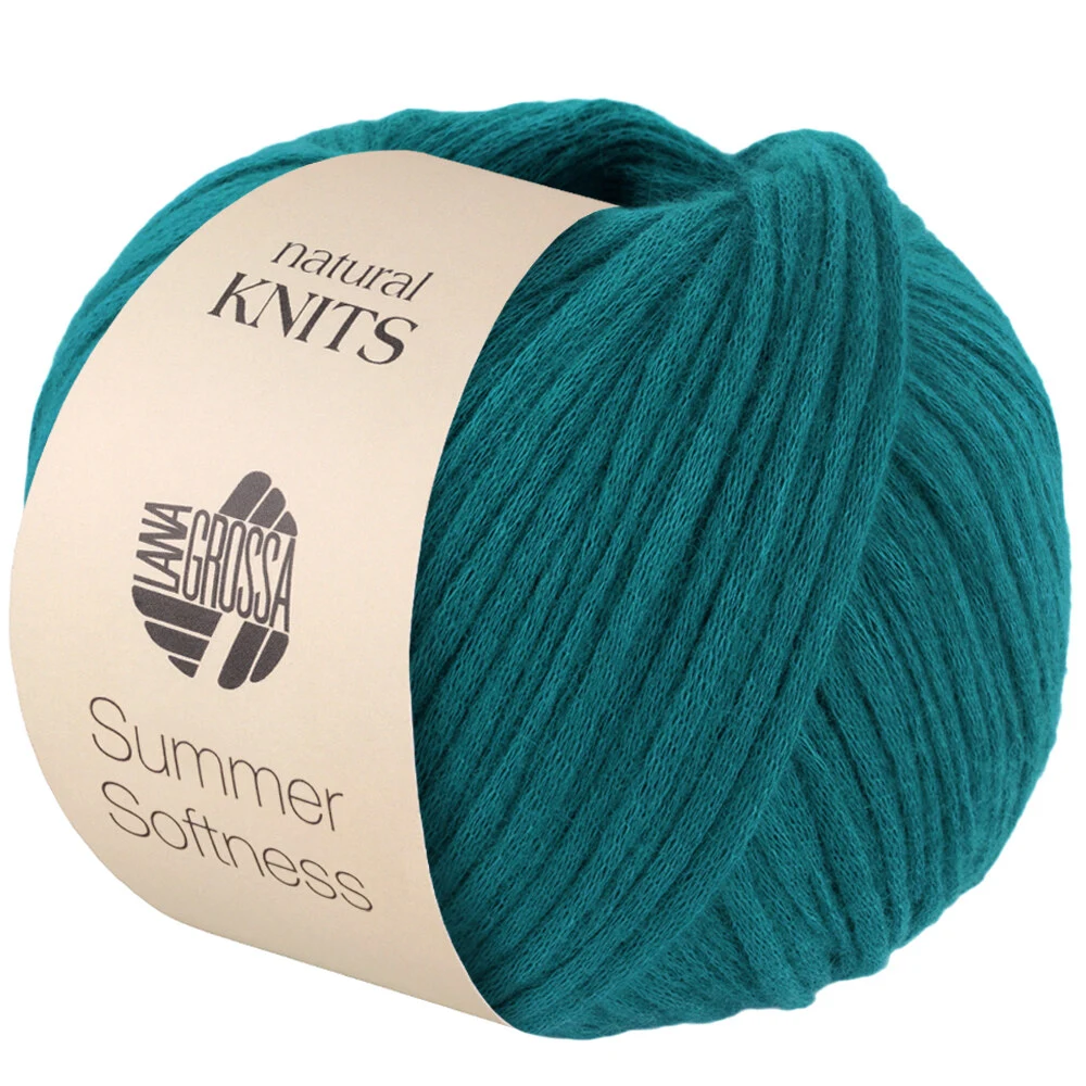 Lana Grossa Summer Softness är ett lätt och mjukt garn som kombinerar naturliga material med en lyxig känsla. Med 80% bomull och 20% merinoull har detta garn en unik struktur där en fin bomullstråd omges av luftiga merinofibrer. Resultatet är en elegant, lätt och andningsbar kvalitet som känns behaglig mot huden.