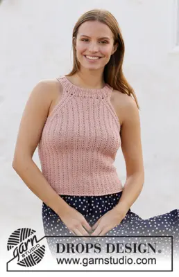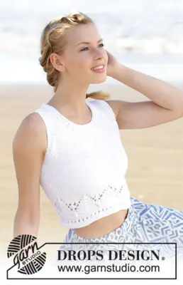 Stickad topp / crop top i DROPS Paris. Arbetet stickas nedifrån och upp i slätstickning med I-cord kant. Storlek S - XXXL.