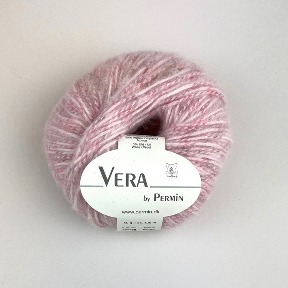 Permin Vera är ett chainette-garn tillverkat av naturliga fibrer. I detta garn har ull och alpaca varsamt blåsts in i en kedja av bomull, vilket ger en lätt, mjuk och elastisk struktur som känns behaglig mot huden. Garnet är tillverkat i Italien med fokus på hållbarhet, miljö och djurvälfärd.